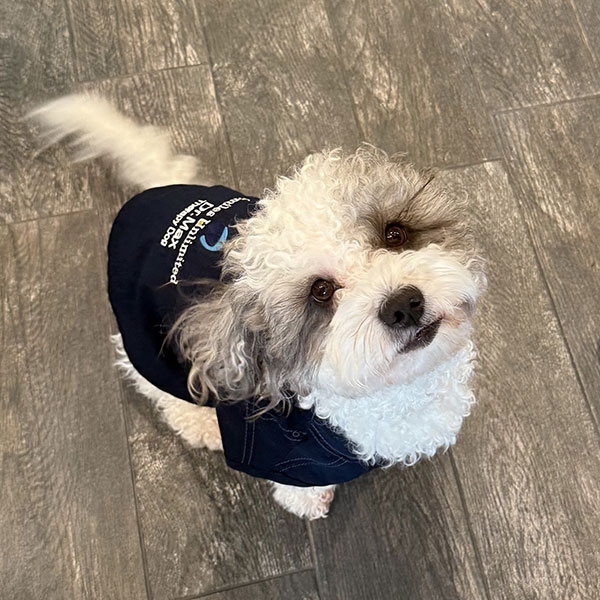 Dr. Max, our medical therapy dog, helps keep patients with dental anxiety calm while undergoing even the simplest of dental procedures. And although he is a trained medical therapy dog, all of our patients, even those who have no fear of the dentist, love spending time with Dr. Max.